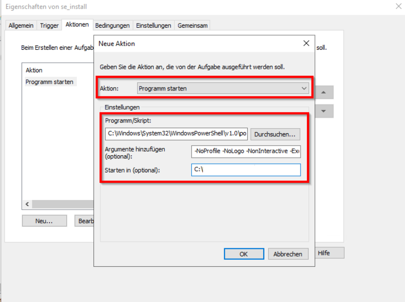 -NoProfile -NoLogo -NonInteractive -ExecutionPolicy Bypass -Command "\\servername\se_install\Deploy-ServerEye.ps1 -Deploy OCC-Connector -CustomerID 'CustomerID' -ApiKey 'ApiKey' -Silent"