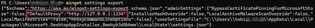 Um den Proxy https://127.0.0.1:2345 für winget zu aktivieren lautet das Kommando: