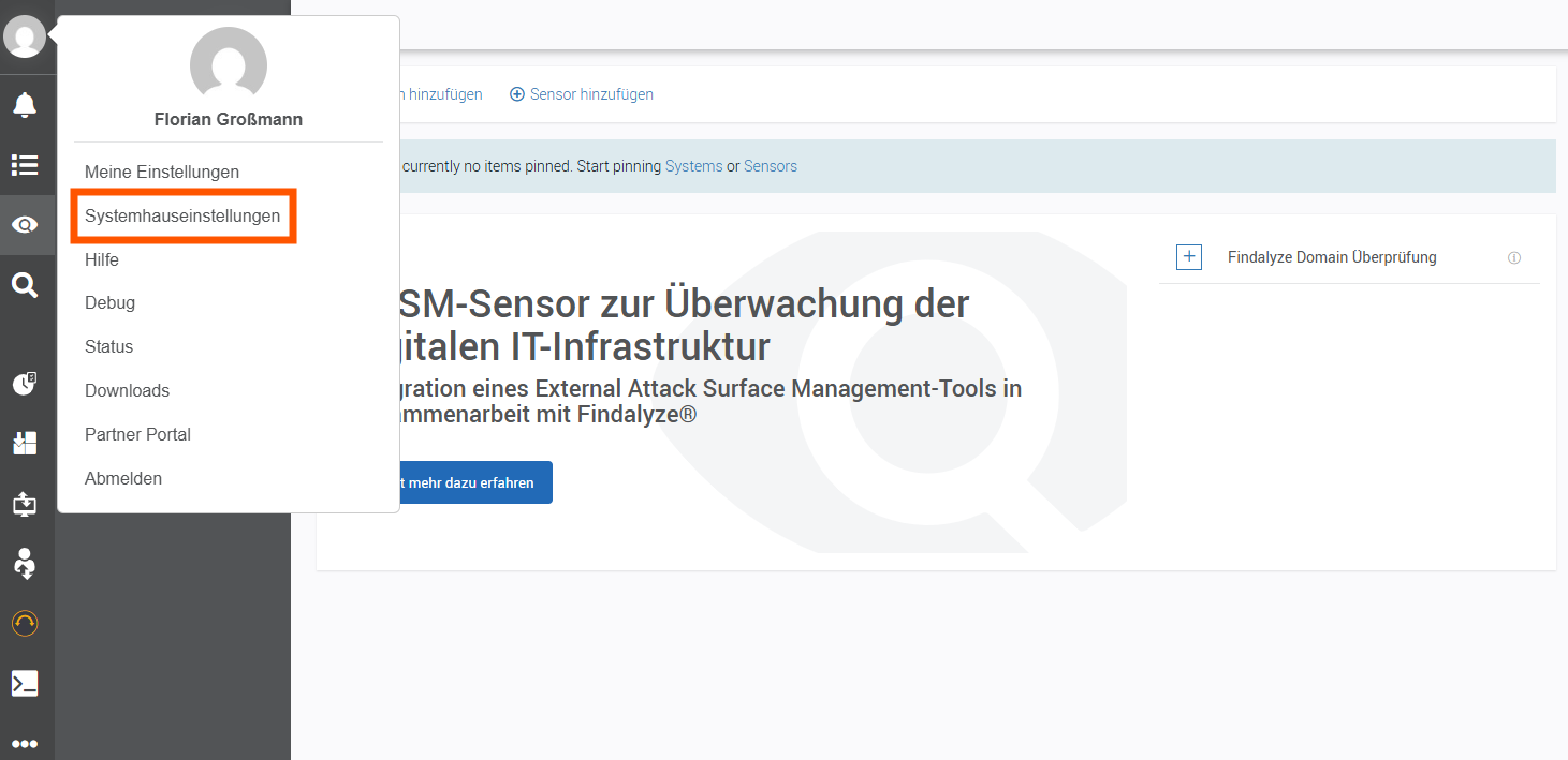 - In der Vollversion von servereye wird Euch an dieser Stelle der Punkt „Systemhauseinstellungen“ angezeigt, unter dem Ihr die volle Bandbreite an verschiedenen Kalibrierungsoptionen, Dokumentationsmöglichkeiten wie auch Fernwartungslösungen für und mit servereye und in diesem Zuge für Euer Monitoring ausschöpfen könnt. Des Weiteren wird in dieser Ansicht der Schnellzugriff zum Partnerportal dargestellt: