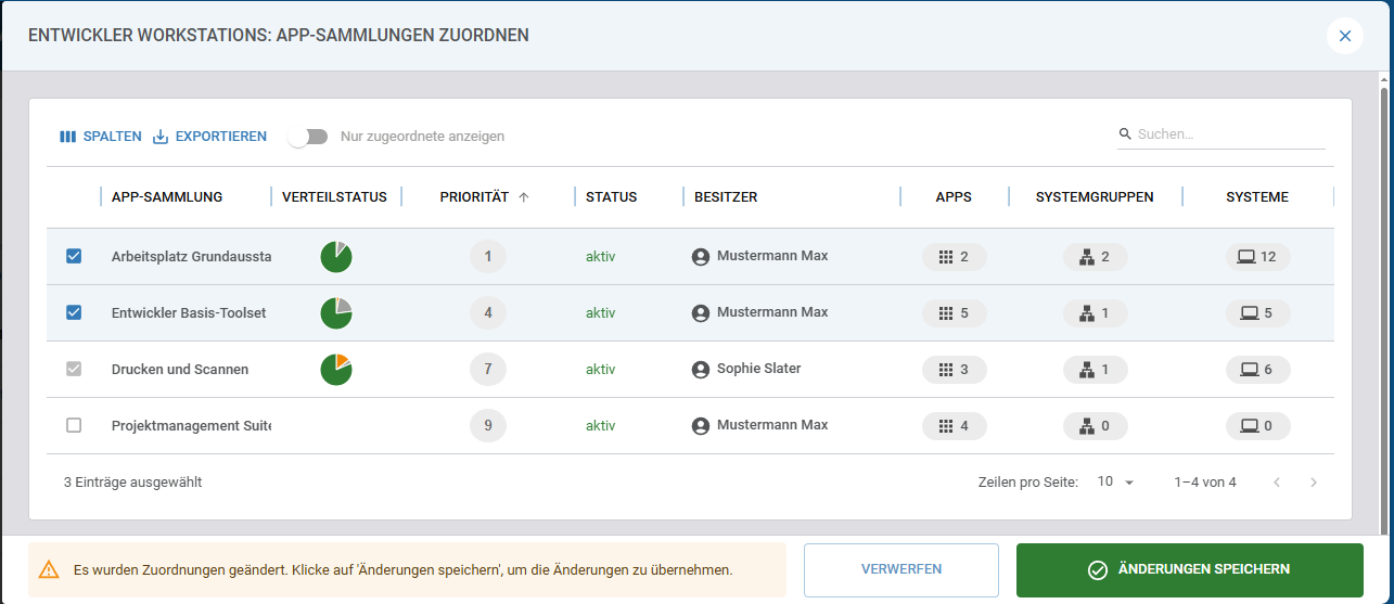 - Klicke auf den Button Änderungen speichern, um die ausgewählten App-Sammlungen zuzuordnen.