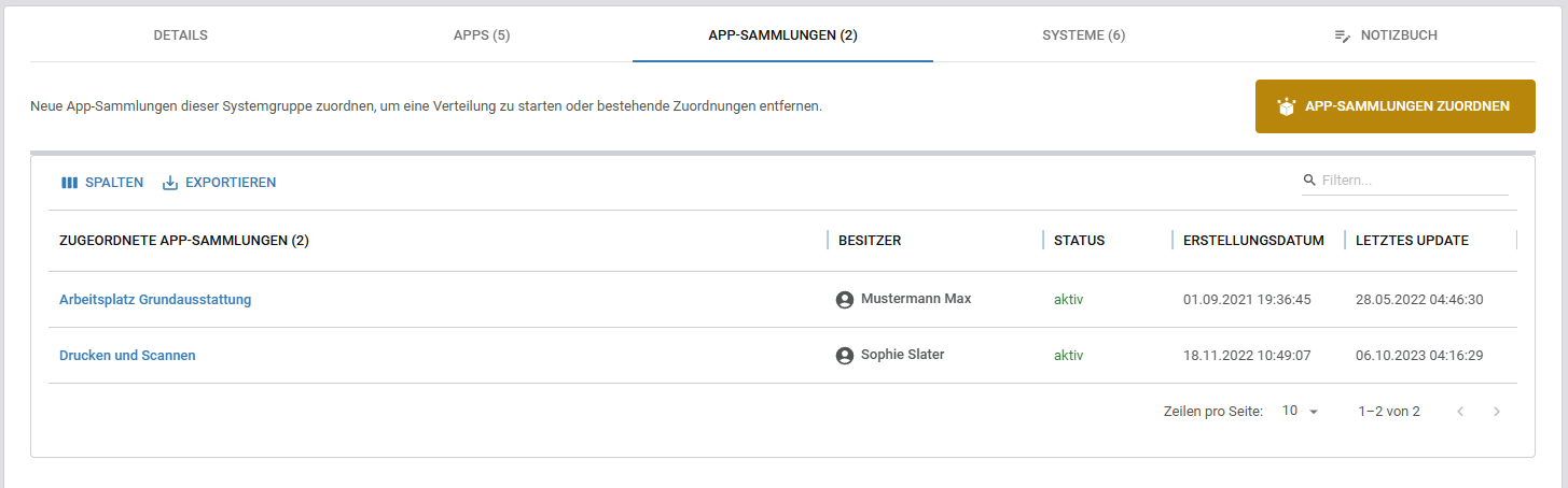 - Du siehst eine Liste aller bereits dieser Systemgruppe zugeordneten App-Sammlungen.