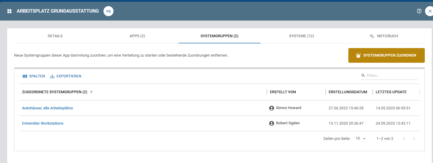 - Du siehst eine Liste aller bereits dieser App-Sammlung zugeordneten Systemgruppen.