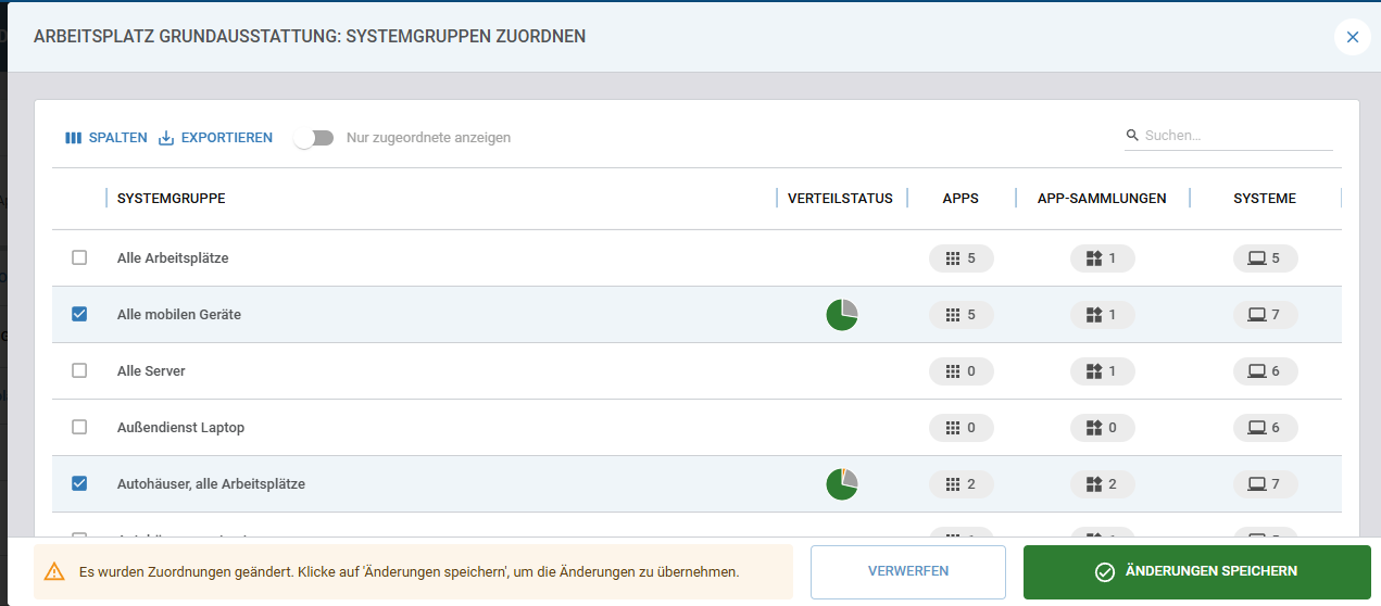 - Klicke auf den Button Änderungen speichern, um die ausgewählten Systemgruppen zuzuordnen.