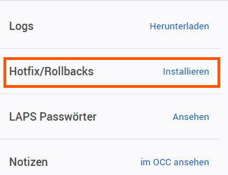 - Auf der rechten Seite im Dashboard findest Du folgende Option für Hotfixes: